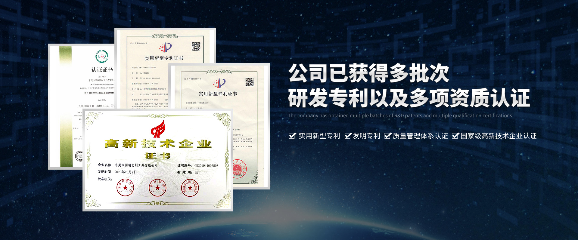 國瑞公司擁有20多人的研發團隊,與多家數控加工行業知名客戶群體建立長期戰略合作伙伴關系,共同解決切削工具實際應用中的各種難題,國瑞已成為國家級高新技術企業并擁有26項應用專利和5項發明專利。